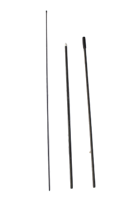 Hastes rígidas com 80cm de comprimento e uma ponteira flexível de 1m fabricados em fibra de vidro.